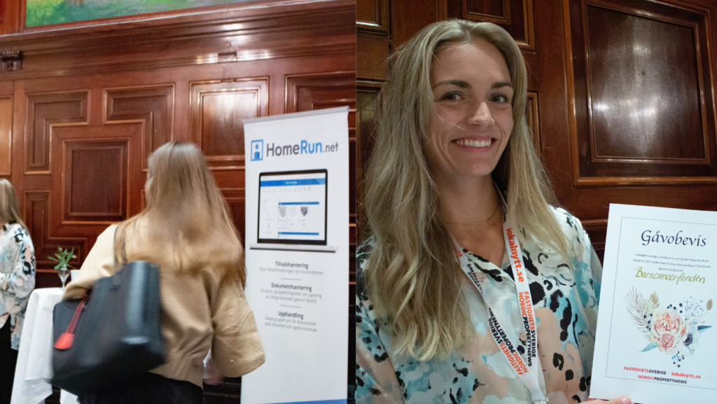 Högt tempo och mingel vid pausen. | Som tack för deltagandet under paneldiskussion fick HomeRun erhålla ett gåvobevis till Barncancerfonden.